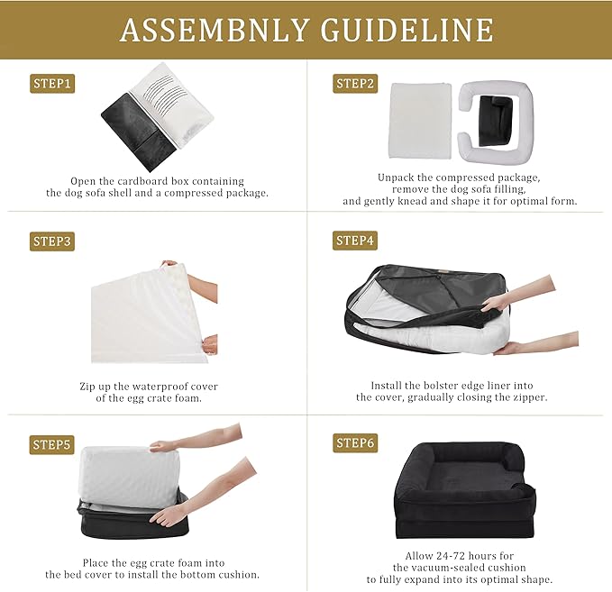 - Suitable Size: Suitable for All Breeds: 42"W x 32"L x 6.5"D; Sleeping surface: 34"W x 27.5"L (Up to 90lbs); When selecting the product size, please pay attention to the sleeping area. Please wait for 48 hours for full expansion to ensure optimal height and comfort before using.