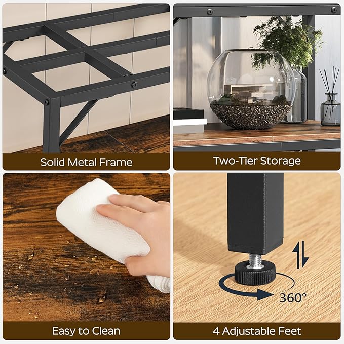 20 Gallon Fish Tank Stand, Aquarium Stand with 2-Tier Storage Shelves, Heavy Duty Breeder Turtle Terrarium Stand Rack for Home Office, 24.0" L x 11.8" W x 24.4" H, Rustic Brown FTHR2001