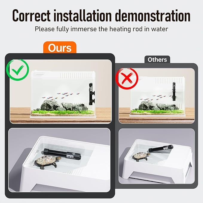 - After-sales service: This fish tank heater is not only of stable quality, safe and reliable, but also has very considerate after-sales service. We promise that if there are any quality problems within one year of use, we will provide you with free returns and exchanges. Our professional after-sales team is on standby at any time.