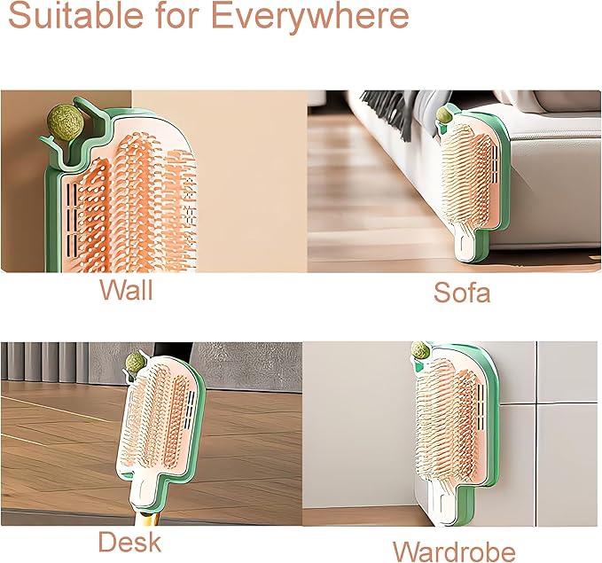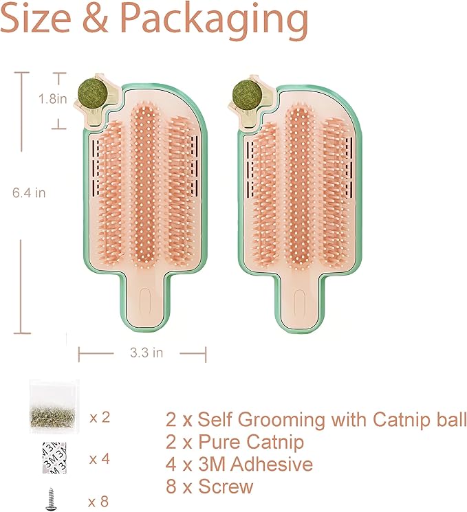 Catnip Toys for Indoor Cats 2 Pack, Stick on Wall Cat Brush with Catnip Ball Toys, 2 in 1 Massage & Self Groomer, Corner Brush