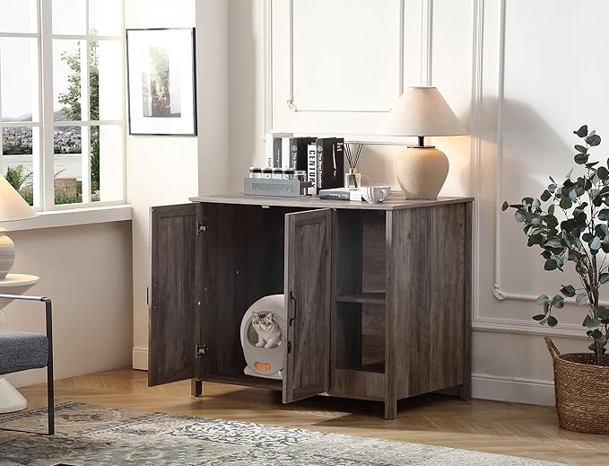 Cat Litter Robot Enclosure,Large Space for Placing Litter Robot 3/4,Power Outlet and Dog-Proof Shelf for Litter Robot Cabinet,Litter Collector for Automatic Litter Box Enclosure,Grey