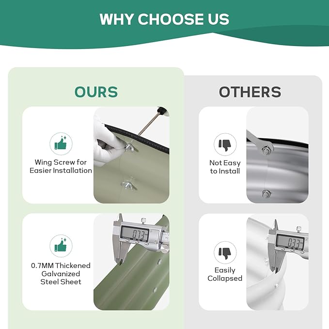 - 【 Easy Assembly 】Our metal raised garden bed is simple and easy to install. According to the detailed instructions and installation tools we provide, you can easily assemble your garden box and start planting with just a few simple steps and little time.