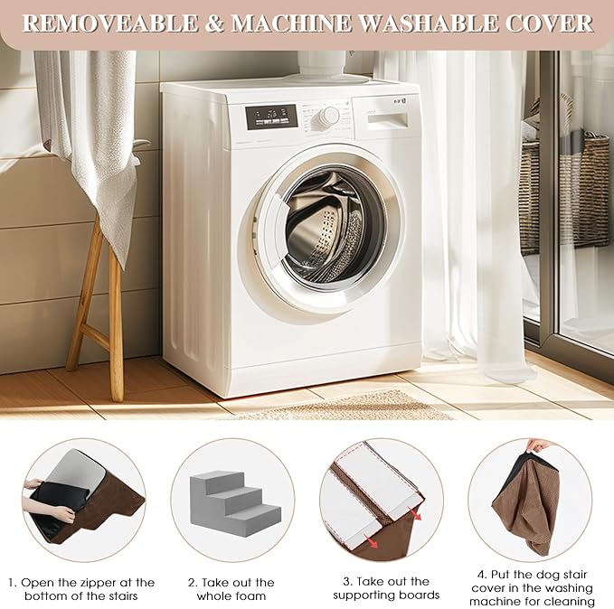 - 【ENHANCED STABILITY】GGIB dog stairs improve a new design with supporting boards, added between the foam stairs and the removable cover. They are fixed inside the cover. Pets can step on more stable and supportive stairs surface, preventing them from slipping when moving quickly.