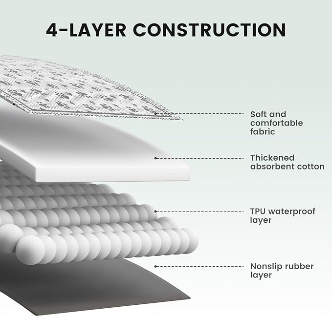 - Thick & Durable-Materials:Thicker and more absorbent, saving the time you need to replace pads. The back of them does not easily get saturated. The durable waterproof layer reduces liquid from leaking to the floor/carpet. Comfortable and no tracking. Keep your home clean.