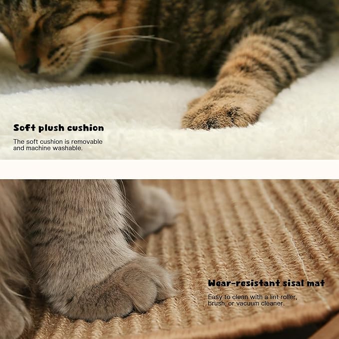 - 【Easy to Assemble and Maintain】This cat scratch bed includes all necessary tools and clear instructions for easy assembly. The soft cushion is removable and machine washable. To clean the sisal mat cover, use a lint roller, small brush, or vacuum cleaner.