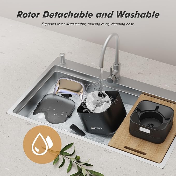 - Washable Dispensing Mechanism: Every part that comes into contact with food is designed for hassle-free cleaning. The rotating dispenser, food container, top lid, and food tray are all detachable, making it easy to keep your feeder spotless. It also includes a premium stainless steel bowl that’s rust-resistant, easy to clean, and more hygienic than plastic, helping to prevent chin acne and residue buildup so your pet’s meals stay cleaner and fresher.