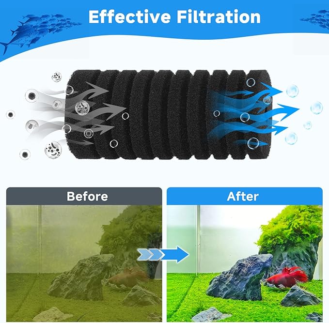 - Easy Installation: AQQA filter sponges are designed to be easily changed or replaced; Please soak the new filter sponges in the tank for a while before using