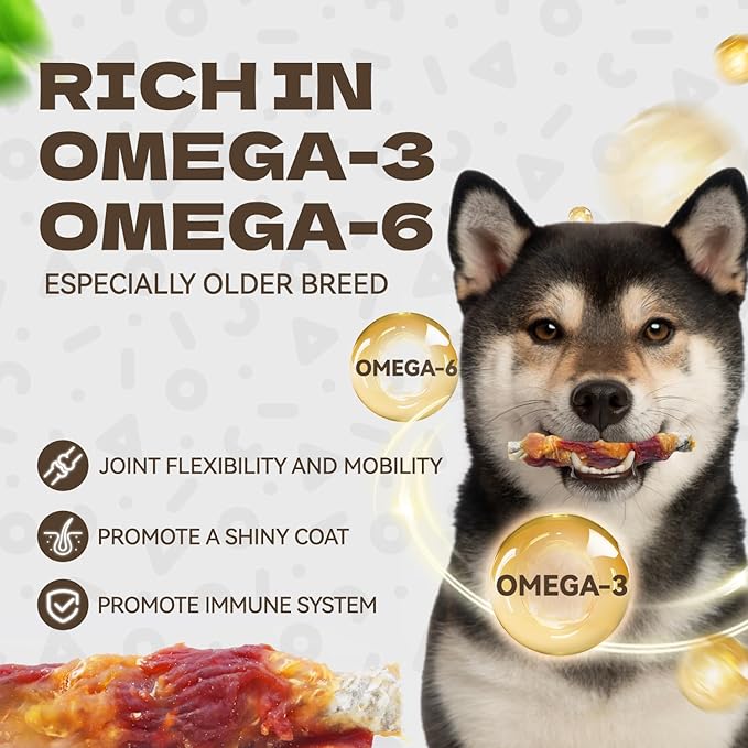 - Rich in Omega-3 Dog Chews: Long lasting dog treats promote healthy skin, shiny coat, and joint flexibility, ensuring optimal vitality and overall well-being. Great cod skin dog treats for coat health, hip and joint support