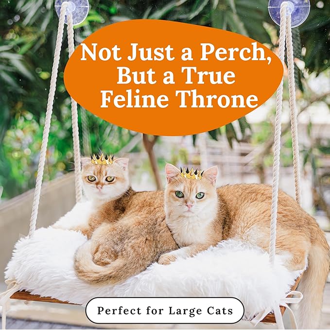 - Strong & Sturdy Frame: Built with a solid pine wood board and thick cotton ropes, and enhanced with 5 strong suction cups capable of supporting up to 80 lbs, our cat window seat guarantees durability and a security while your feline friend enjoys the view.