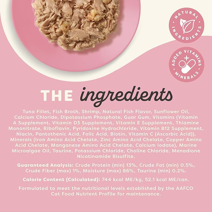 Applaws Vitality Wet Cat Food in Broth, Natural Canned Cat Food, Wet Food for Cats with Added Vitamins and Minerals, Grain and Carrageenan Free, Tuna Fillet & Shrimp in Broth (24 Count, 2.47 oz Cans)