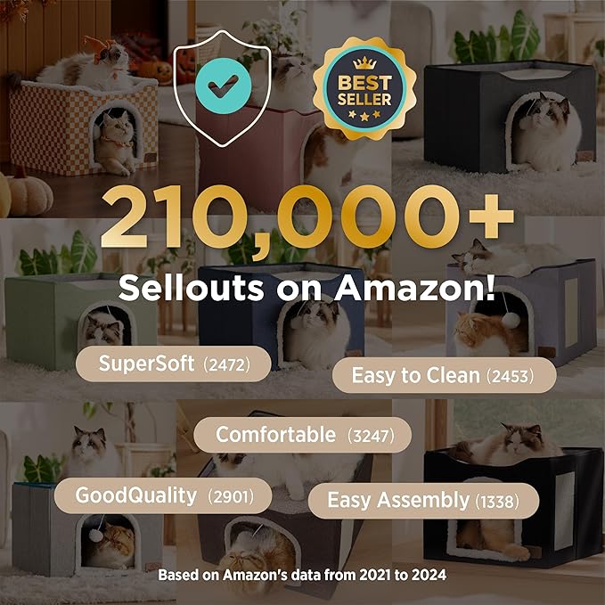 - Pet Safe Design: Cat hideaway made from pet-friendly MDF materials with CARB Certification and soft lambswool fabric. This large cat house is equipped with a durable sisal scratching board and plush hanging ball to keep your cat engaged and happy.