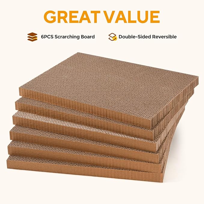 - 【Great Value】 The cat scratching box is designed for durability, and its 6pcs cat scratching boards are reversible, making the scratching life last longer than most others and offering better value through extended use. Infused with catnip which can attracts your feline friends to the scratcher, encouraging lasting enjoyment. Best value for your money.