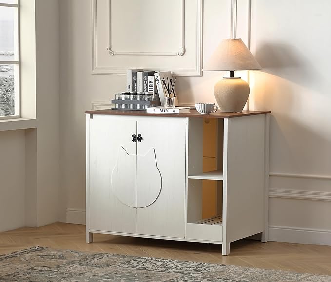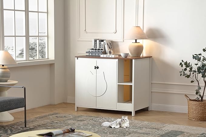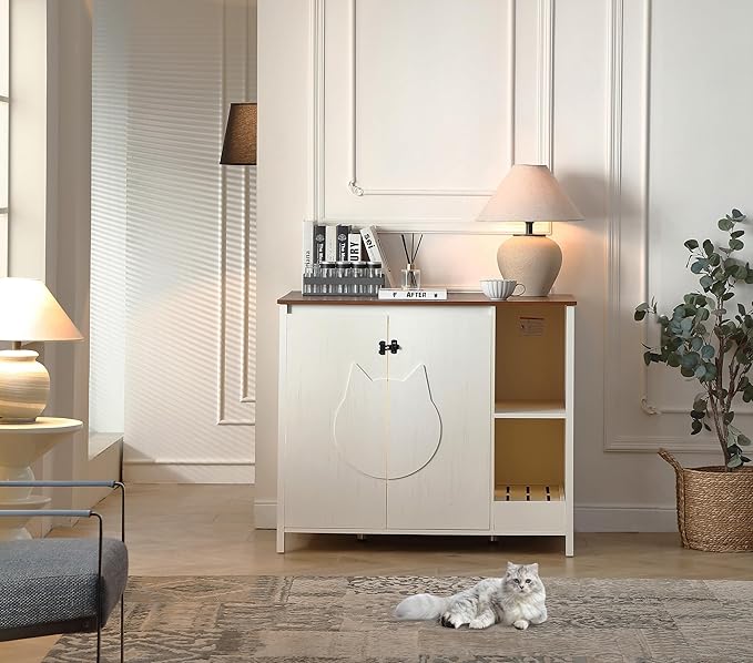 - 4)【Dog proof litter robot cabinet】;We exclusively design this litter robot enclosure box with a adjustable shlelf to prevent dog from entering to eat litter or hurt cat. This shelf can protect your cat, meanwhile, providing a space for you to place cat stuff.
