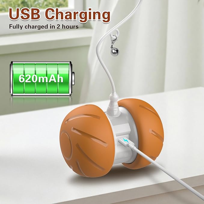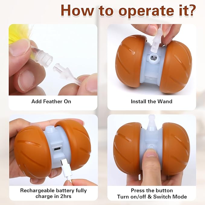 - Irregular Movement - Irresistible Fun: Moving forwards/ backward, spinning and shaking, the automatic rolling cat toy creates unpredictable motion,stimulate the cat's hunting instinct. Let your cat be obsessed with chasing/stalking/pouncing the flying feather. Great entertainment and exercise toys for cats.
