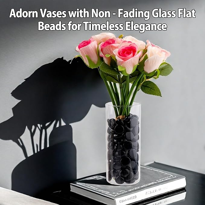 Black Glass Marbles, 0.97 LB Flat Glass Beads for Vases, Mosaic Gem Pebbles for Aquarium Decor, Floral Arrangements Vase Filler Smooth Mancala Stones and Crafts Approx. 80-100PCS