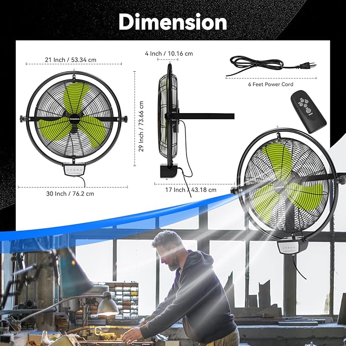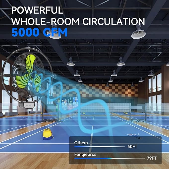 - 𝐋𝐨𝐰-𝐍𝐨𝐢𝐬𝐞 𝐃𝐞𝐬𝐢𝐠𝐧 - With optimized motor and vibration reduction technology. When running at a high speed of 5000 CFM, the noise level is only 59 dB, this wall fan is lower than the industry standard, creating a quieter gathering or working environment