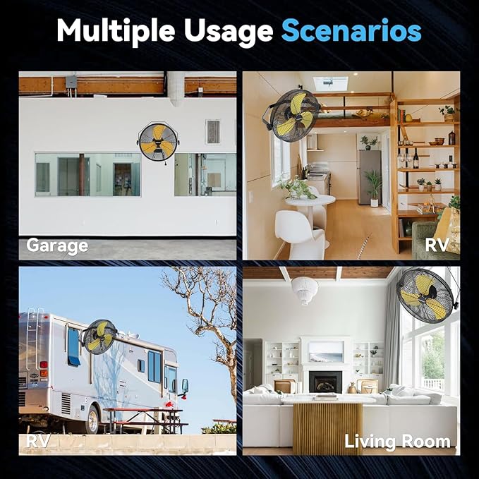 - 𝐇𝐢𝐠𝐡 𝐕𝐞𝐥𝐨𝐜𝐢𝐭𝐲 𝐀𝐢𝐫 𝐅𝐥𝐨𝐰 - Equipped with 3 adjustable wind speeds, low (3500CFM), medium (4200CFM) and high (4580 CFM), this wall fan utilizes the raw power of the pure copper motor to provide hurricane-like airflow to perfect for outdoor patio, garage, warehouse, humidity environments, dust