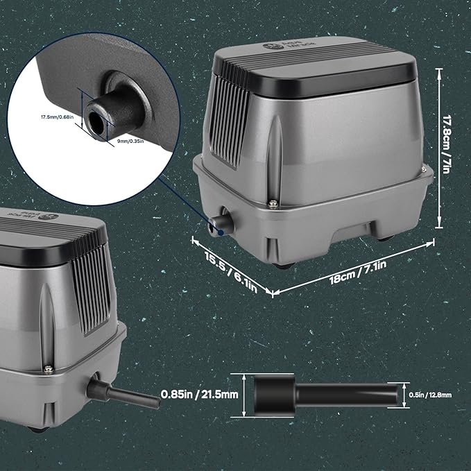 - WHISPER-QUIET OPERATION - Experience peace and tranquility with this koi pond aerator, thanks to its unique motor design, straight airflow path, and vibration-relieving rubber feet. The result is a super silent operation that won't disturb the serenity of your pond.