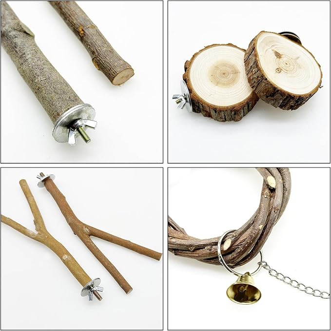 - Multifunctional Bird Toys: Provide a habitat for parrots that provides a naturally uneven surface. They are designed to give your bird's feet a rest. Provides an ideal elevated spot for your bird to swing, chew and climb. Suitable for chewing and nibbling.