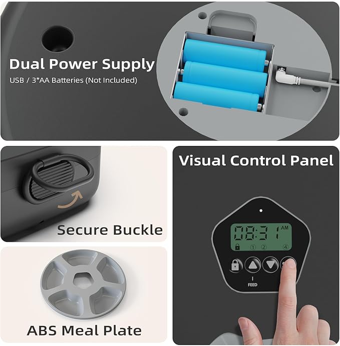- 【Dual Power Options】 Runs on included adapter or batteries (not included), ensuring uninterrupted meals during power outages. Reliable and convenient for worry-free pet care!