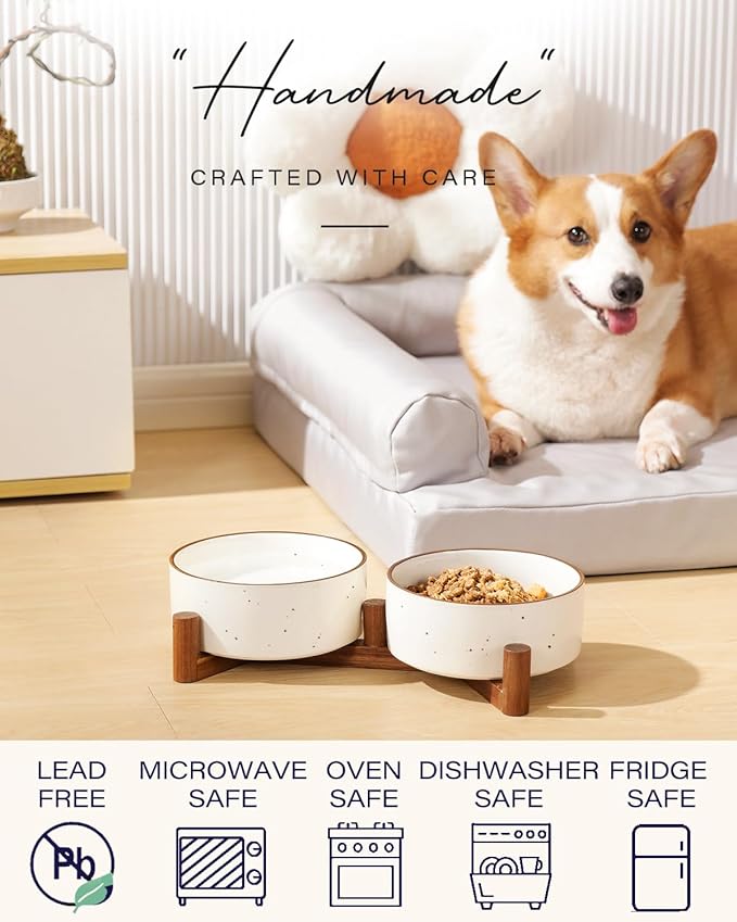 - [Premium Ceramic Construction] Crafted from high-quality ceramic material, ensuring durability and long-lasting use. Resistant to scratches but also free from harmful chemicals, providing a safe and healthy dining experience for your furry friend