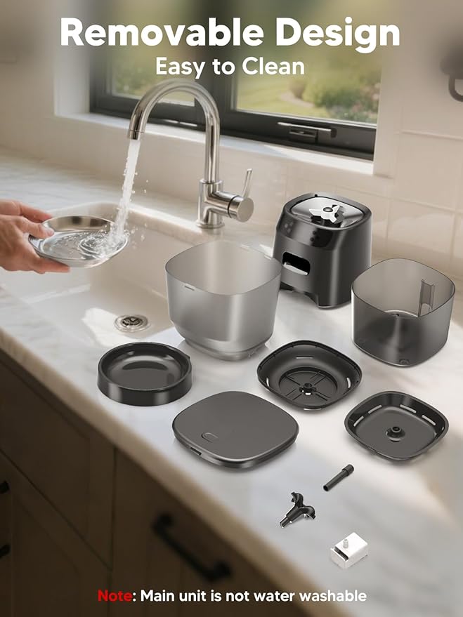 - AUTOMATIC CAT FEEDER & CAT WATER FOUNTAIN SET: Features an automatic cat food dispenser with dual-spiral anti-jam technology and a cat water fountain featuring adjustable 4-stage filtration, ensuring healthier, fresher dining for your pet