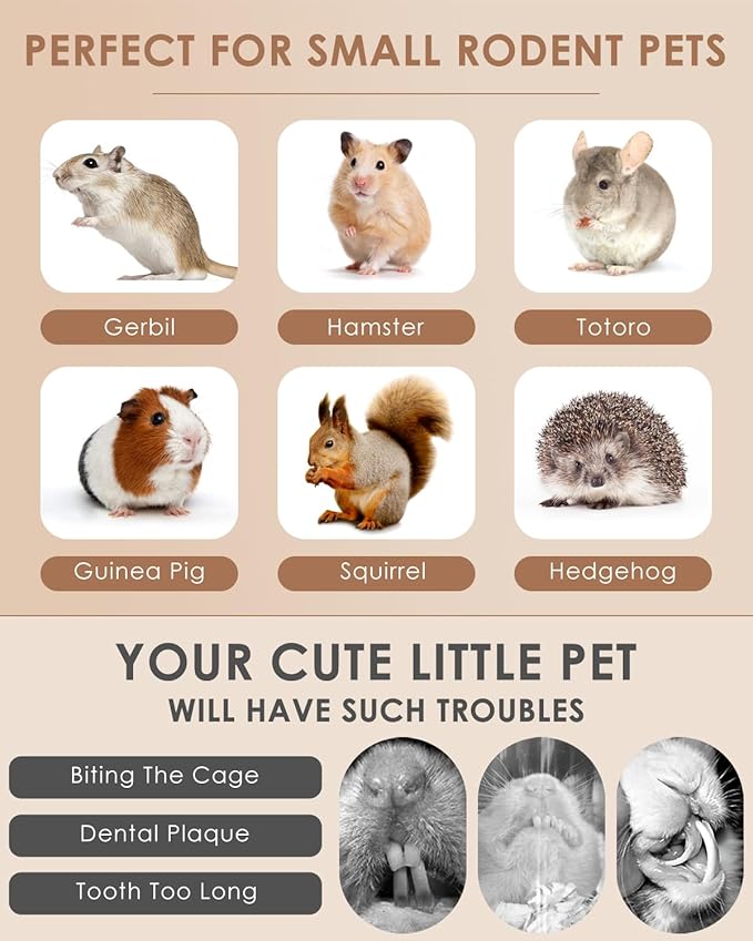- Promote Dental Health: Chinchillas chews not only promotes dental and oral health, but also trims long teeth (such as the incisors of guinea pigs and hamsters) to prevent the pain of overgrowth. It is a molar toy recommended by veterinarians for rodents