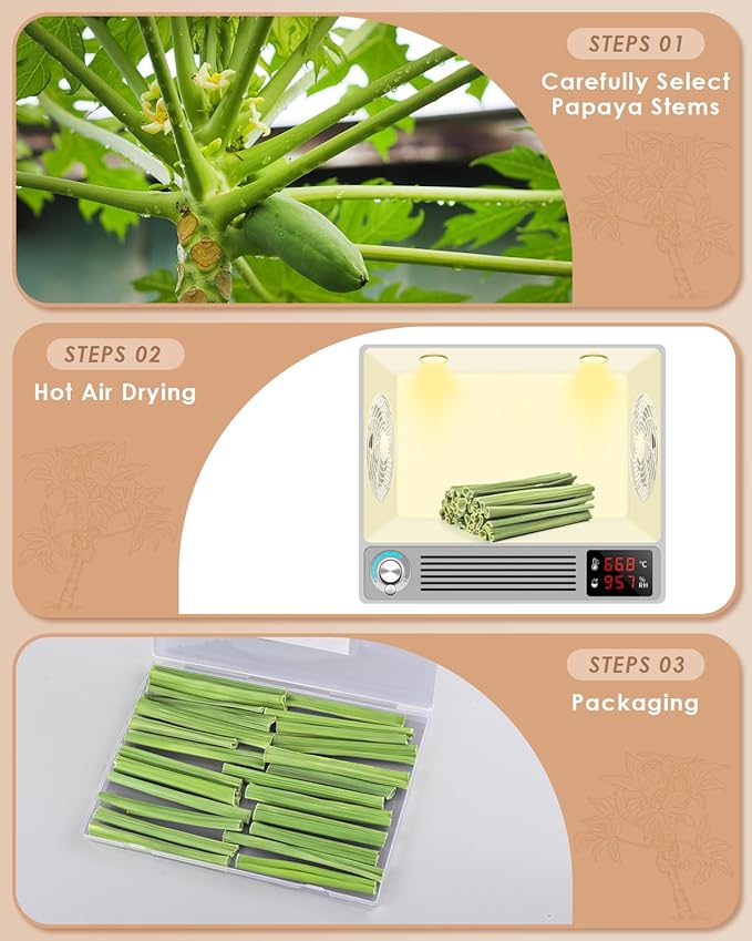 - Natural Organic Materials: 100% natural papaya stem, rich in dietary fiber, xylose, vitamin A&C, low in calories, help digestion, no additives, harmless to your pet. Please be careful not to overfeed your pets, preferably 1 or 2 a day, or every 2 to 3 days