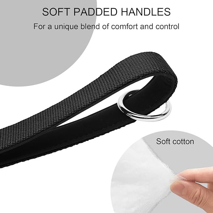 - Heavy Duty dog leash: The aircraft-grade swivel clip rotates 180° to prevent dangerous tangles, while triple-stitched stress points withstands 200+ lbs of pressure. O-ring near the handle according to the situation with a harness, collar or dual dog leash