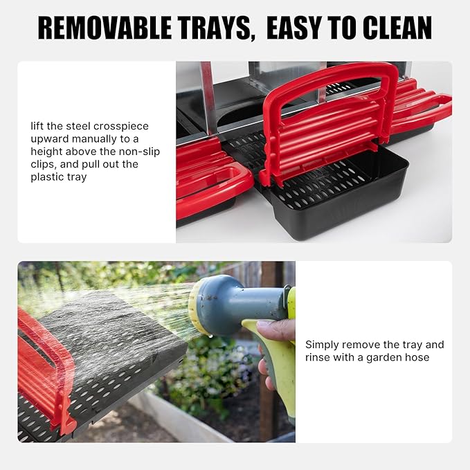 - 𝐄𝐚𝐬𝐲 𝐭𝐨 𝐂𝐥𝐞𝐚𝐧 & 𝐌𝐚𝐢𝐧𝐭𝐚𝐢𝐧: With a removable mesh tray, cleaning is quick and convenient. The tray allows debris to fall through, while the design prevents water accumulation, ensuring a dry, hygienic environment. Simply remove the tray for easy washing and maintenance.