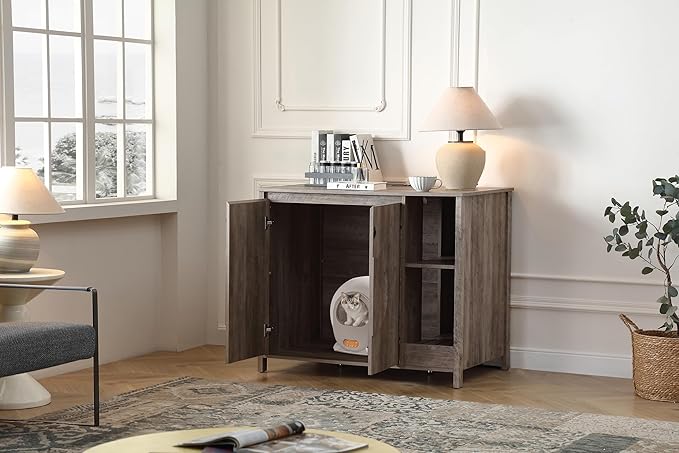 - 4)【Dog proof litter robot cabinet】;We exclusively design this litter robot enclosure box with a adjustable shlelf to prevent dog from entering to eat litter or hurt cat. This shelf can protect your cat, meanwhile, providing a space for you to place cat stuff.