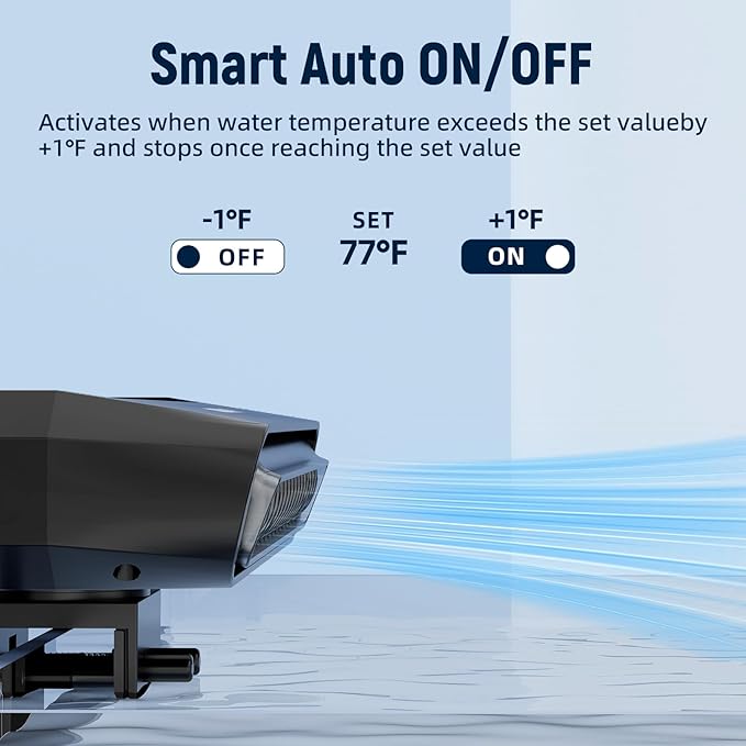 - 【Smart Temperature-Control Fan】The Aquarium Chiller features an independent LED display controller and high-precision temperature probe, with dual display of set temperature and real-time temperature for intelligent water temperature stabilization. With an adjustable range of 59°F-93°F, it's suitable for various aquatic plants and animals requiring cooling, delivering visible cooling effects. It 24/7 Protection for Your Aquatic Pets.