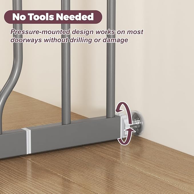 - Tool-Free Installation: The pressure-mounted gate for baby & pet provides a secure hold while protecting your walls and doorways from damage, ideal for renters and hassle-free setups. The pet gate indoor offers a quick, temporary solution that's both safe and convenient.