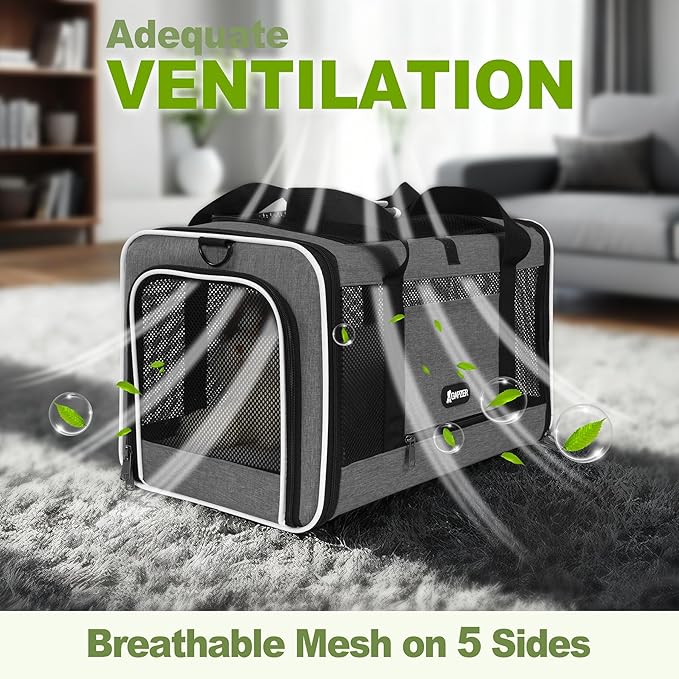 Cat Carrier 18x11x11 Top Load Soft Pet Travel Bag Over 15 lbs, Collapsible Small Dog Puppy Crate 10 Pounds, Small Animal Rabbit Kennel Carrying Case, Kitten Mesh Cage Medium Cat Under 25 Grey