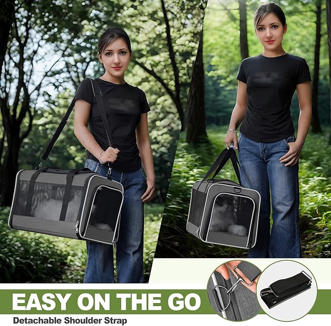 - Stress-Free Travel Ready Bag - Adjustable, detachable shoulder strap allows for hands-free carrying for doggies during airports trips or vet visits. Collapsible case can be stored flat for convenient storage