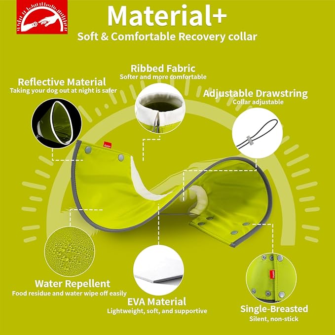 - 【Soft & Lightweight】 Crafted with internal EVA material and Rib Fabric, our cone collar weighs just 3 ounces—half the weight of an egg. This lightweight design ensures dogs sleep comfortably without feeling burdened or restricted around their necks. Plus, the soft cone collar provides excellent rebound near walls or furniture, ensuring your pet's safety without emitting loud noises