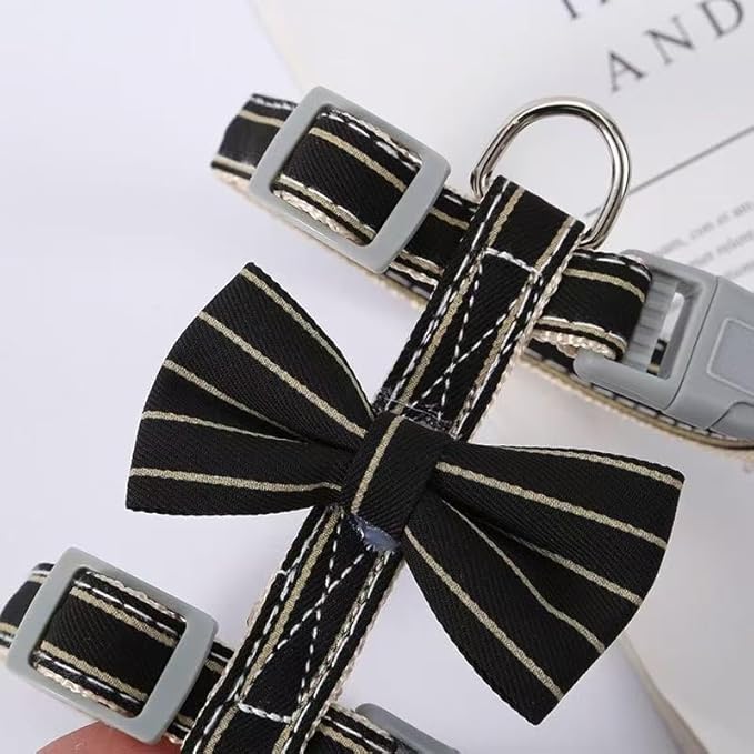 Butterfly Bow Tie Cat Harness and Leash Set - Adjustable, Escape-Proof, Breathable Kitten Vest with Cute Design for Small Cats & Indoor/Outdoor Safety Black S