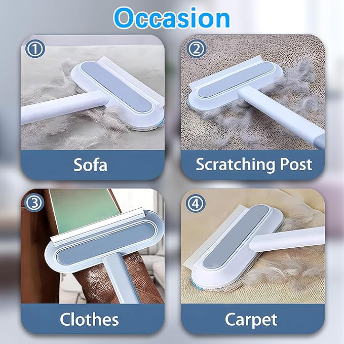 - 【Multi-Surface Hair Removal】Effortlessly lift stubborn pet hair from furniture, carpets, car seats, bedding, and clothing. The large dual-sided brush captures cat and dog hair in seconds without scattering mess.