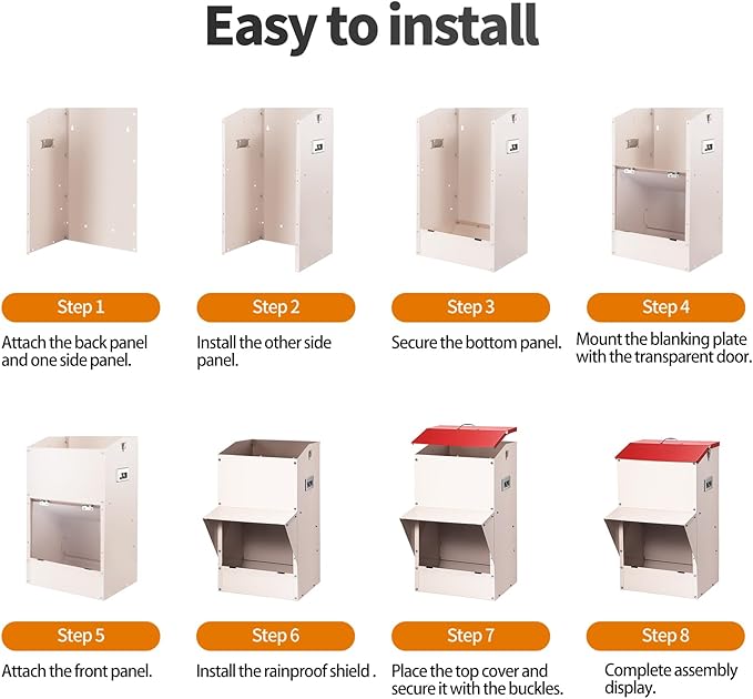 - 【Versatile Mounting & User-Friendly Design–Easy to Use, Easy to Maintain】 Designed with convenience in mind, this metal dog feeder includes two pre-drilled mounting holes for wall or fence installation. You can also place it freestanding on the ground. A wide top lid with an ergonomic handle makes refilling quick and mess-free, while side grips make it easy to move when needed. Assembly is simple with included tools and instructions.
