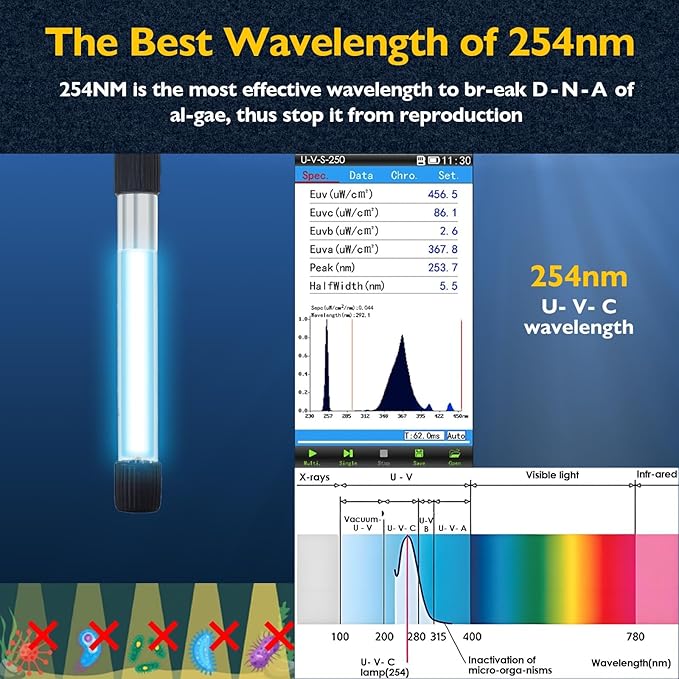 - PROGRAMMABLE U - V LIGHT - Equipped with a 3W U - V light, this fish filter ensures crystal-clear water by controlling green al-gae. The built-in timer offers flexible operation intervals (3/6/12/24 hours), allowing you to customize the light's runtime. Note: Timer controls only the U - V light, not the pump.