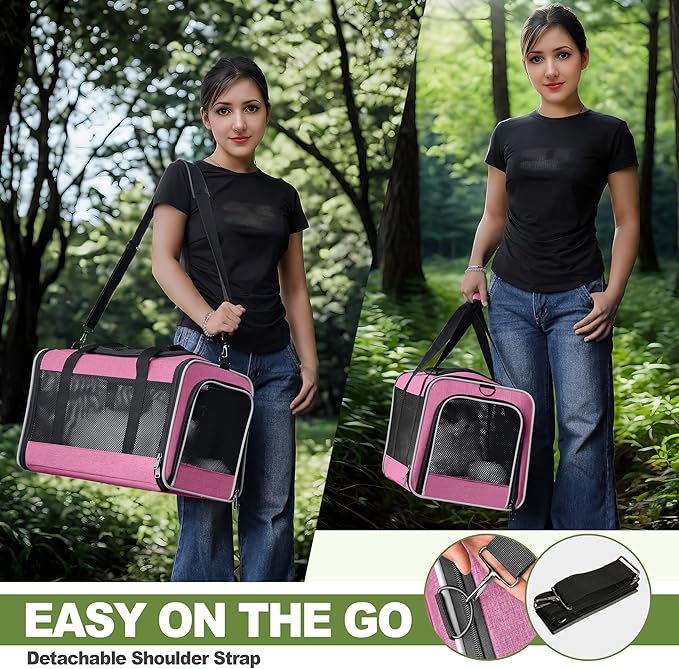 Cat Carrier 18x11x11 Delta Airline Approved, Easy Load Soft Pet Plane Travel Bag 15 pounds, Teacup Dog Crate 12 lbs, Yorkie Kennel Carrying Case, Kitten Toy Poodle Mesh Cage up to 20lbs Pink