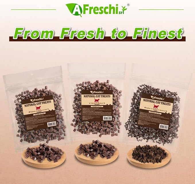 Afreschi Natural Cat Treats Turkey & Chicken & Mackerel W Shape 6 oz, All-Natural, High-Protein, Grain-Free, Healthy, Low-Fat, Easily Digestible