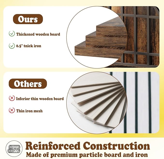 - 【Upgraded Reinforced Structure】 Built with premium particle board and a thickened iron frame, this dog kennel indoor delivers superior stability and durability. Its robust construction resists chewing, scratching, and daily wear—perfect for large breeds. Designed to last, it keeps your dog secure while blending seamlessly with your home decor.