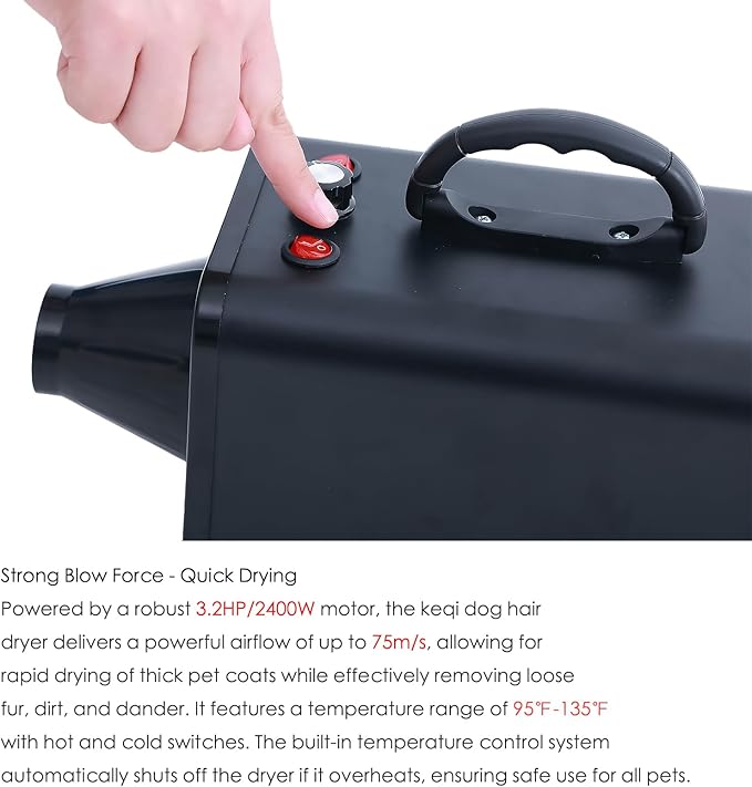- ① High Power & Efficiency:this professional-grade hair dryer for Pets delivers 2400W / 75M/S Power, cutting drying time by over 60%.