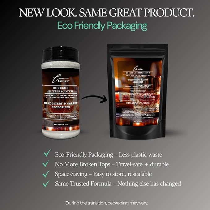 Bourbon & Butterscotch Carpet Freshener Powder 16 oz | Powerful Odor Eliminator for Home | Upholstery Deodorizer | Carpet Deodorizer | Pet Urine | Cat Litter Box